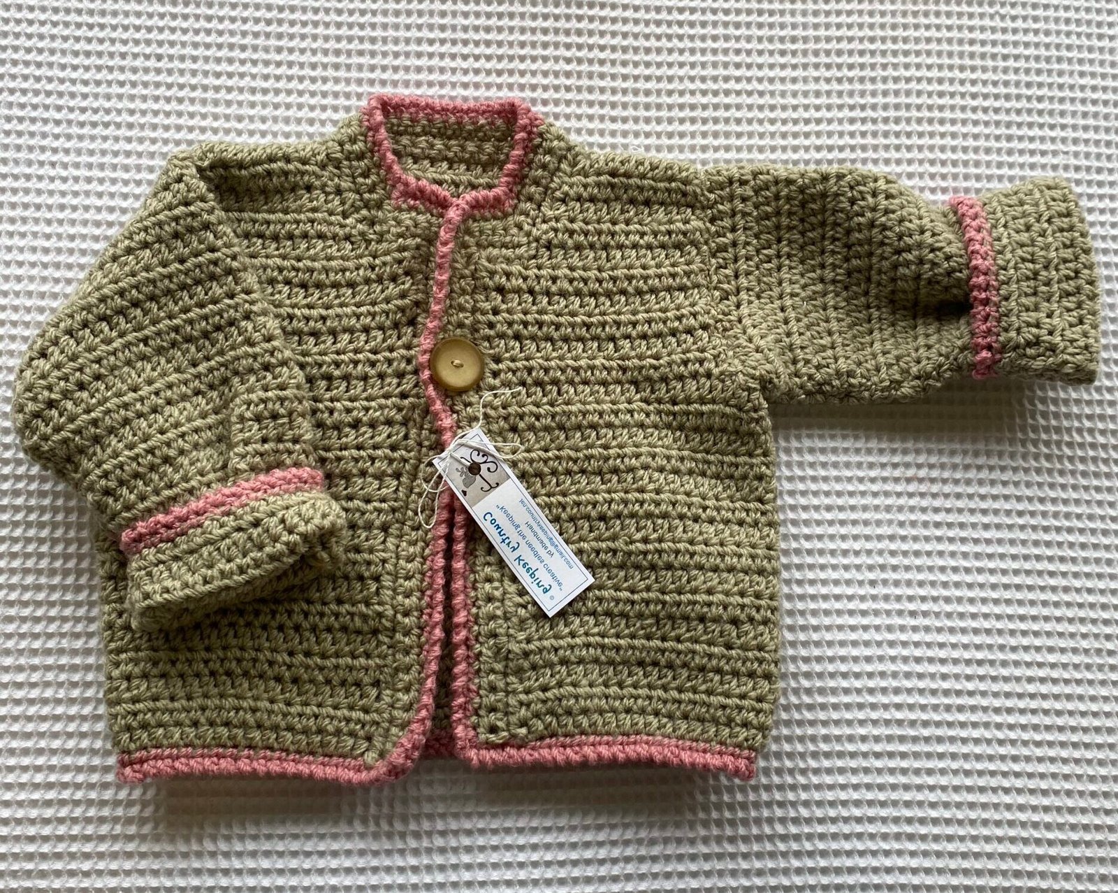 Crochet Brown with rose pink trim – Acrylic, easy machine washable.