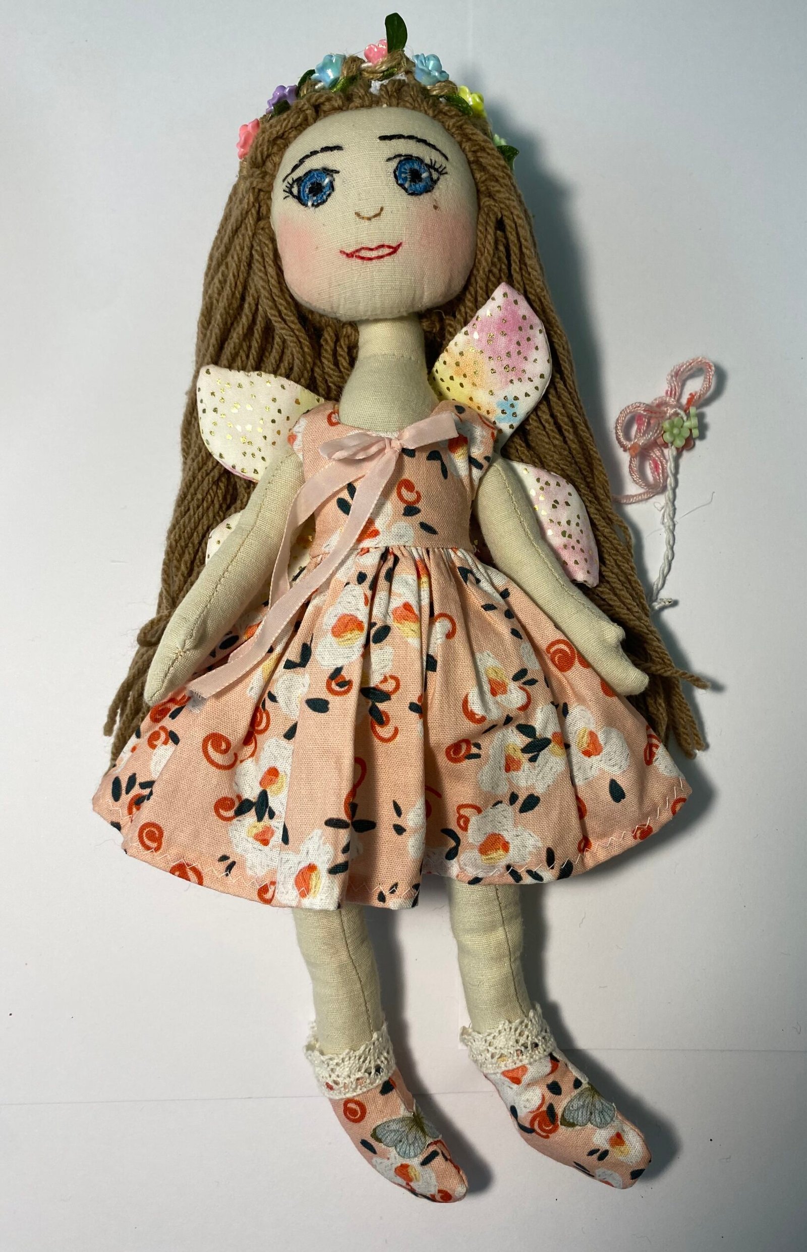 All 35cm Flower Fairy rag dolls are made with  my own designed pattern using a popular hard wearing Linen fabric.