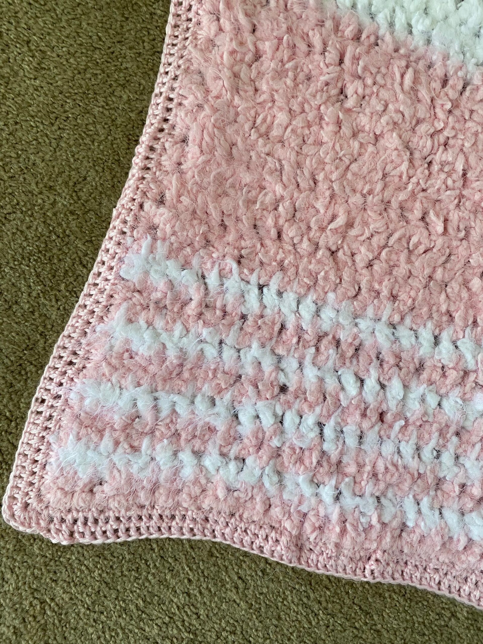 Made with 8ply very soft and fluffy acrylic.  Beautiful baby blanket suitable for a wee girl.